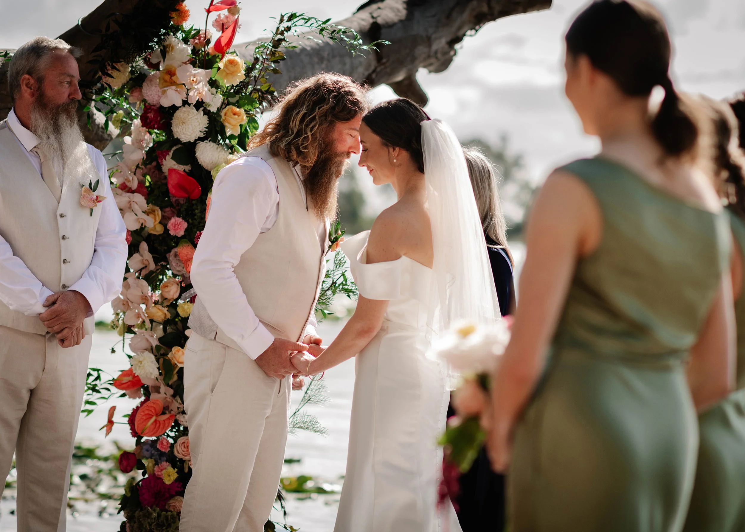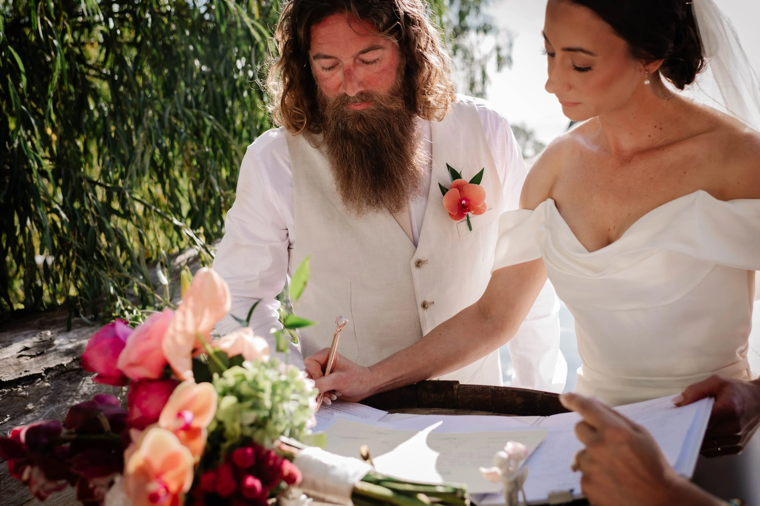Their ceremony took place on the dock by the river, with the sunshine sparkling on the water and the most beautiful natural light setting the scene. It was simple, meaningful and full of emotion, the perfect reflection of who they are.