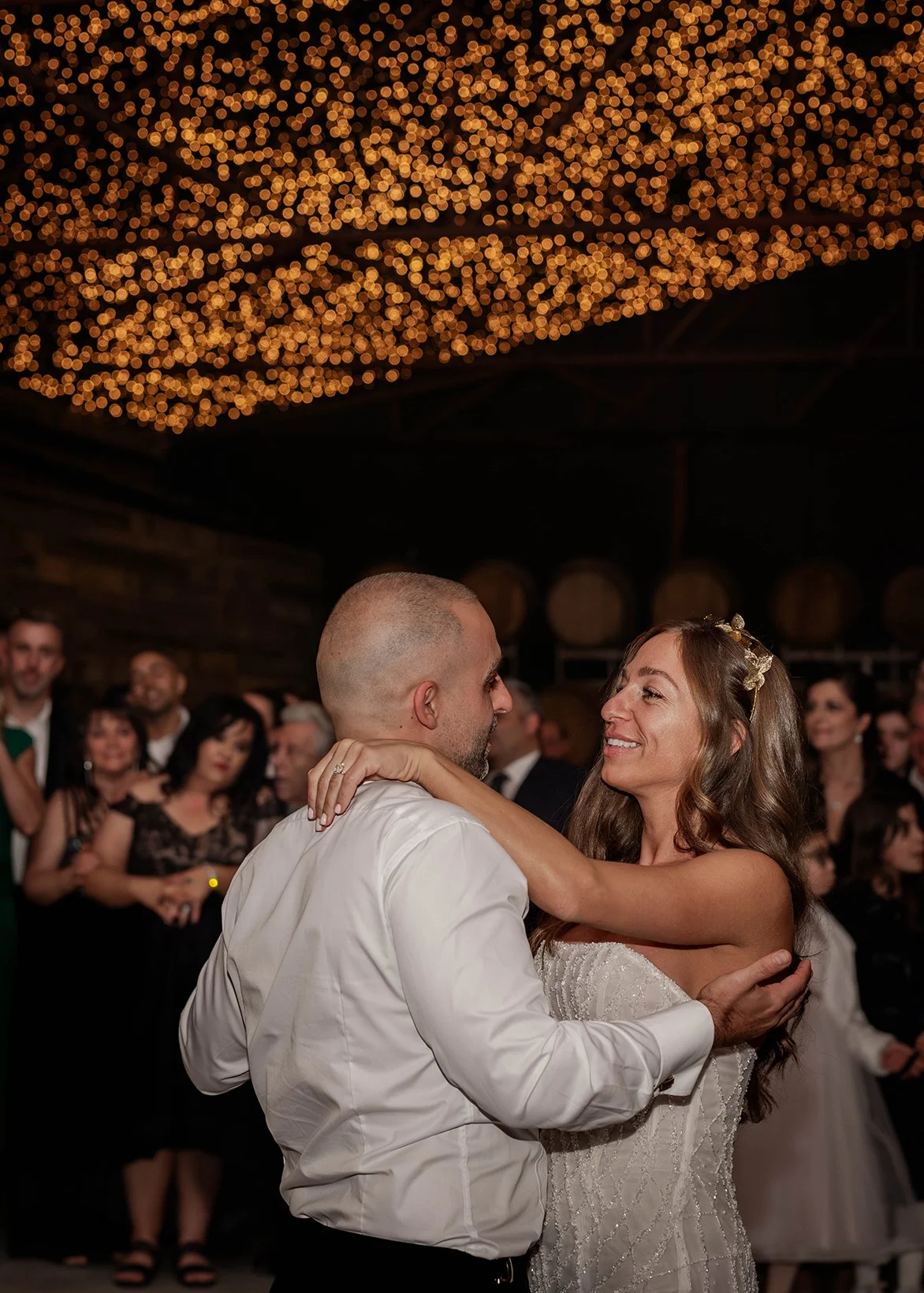 As the sun began to lower, we stepped out for sunset portraits among the vines, and these were some of the most beautiful moments of the day. The light was soft and golden, the vineyard looked incredible, and Rocca and Artemis were completely wrapped up in each other. Those quiet few moments away from the celebration gave them space to just be together, and the result was pure magic.